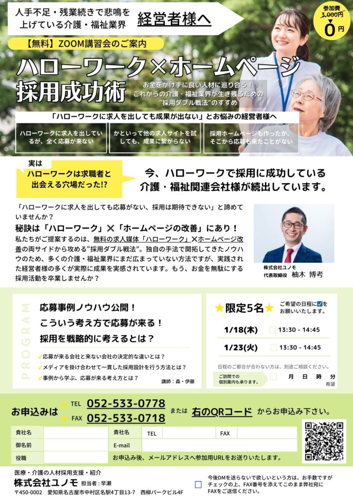 【無料Zoomセミナー】「ハローワーク✖ホームページ採用成功術」セミナー開催 - 2024年1月