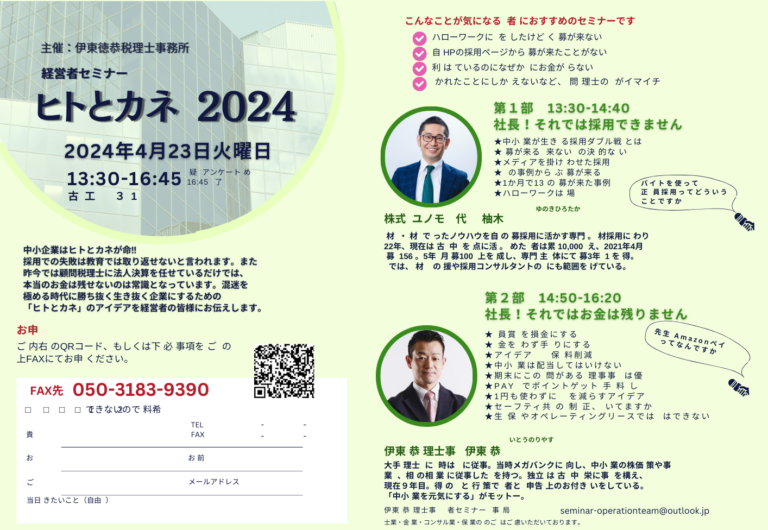 経営者向けセミナー「ヒトとカネ 2024」開催 - 2024年4月