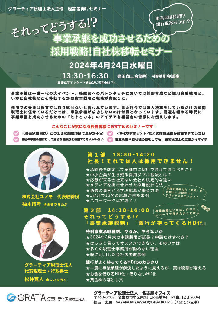 「事業継承を成功させるための採用戦略!自社株移転」セミナー開催 - 2024年4月