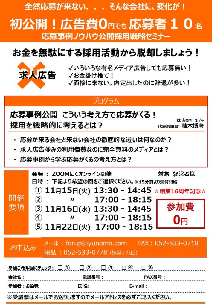 2022年11月「応募事例ノウハウ公開採用戦略」無料webセミナー開催のお知らせ