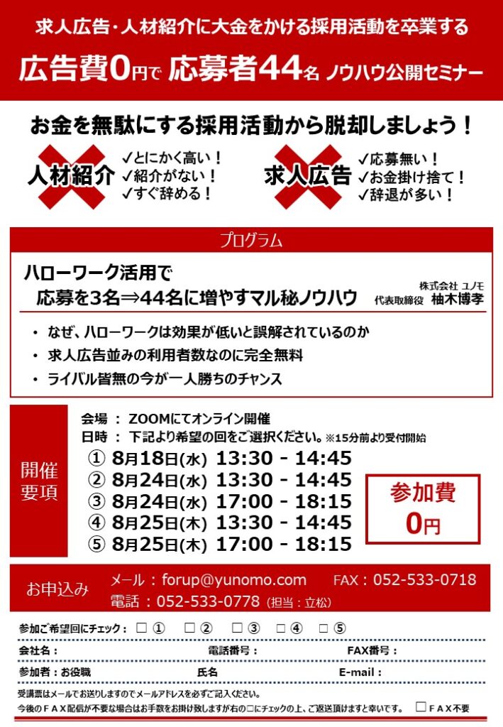2022年8月「ハローワーク活用術」無料webセミナー開催のお知らせ