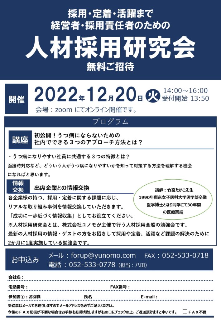 12月20日(火)「人材採用研究会」無料webセミナー開催のお知らせ