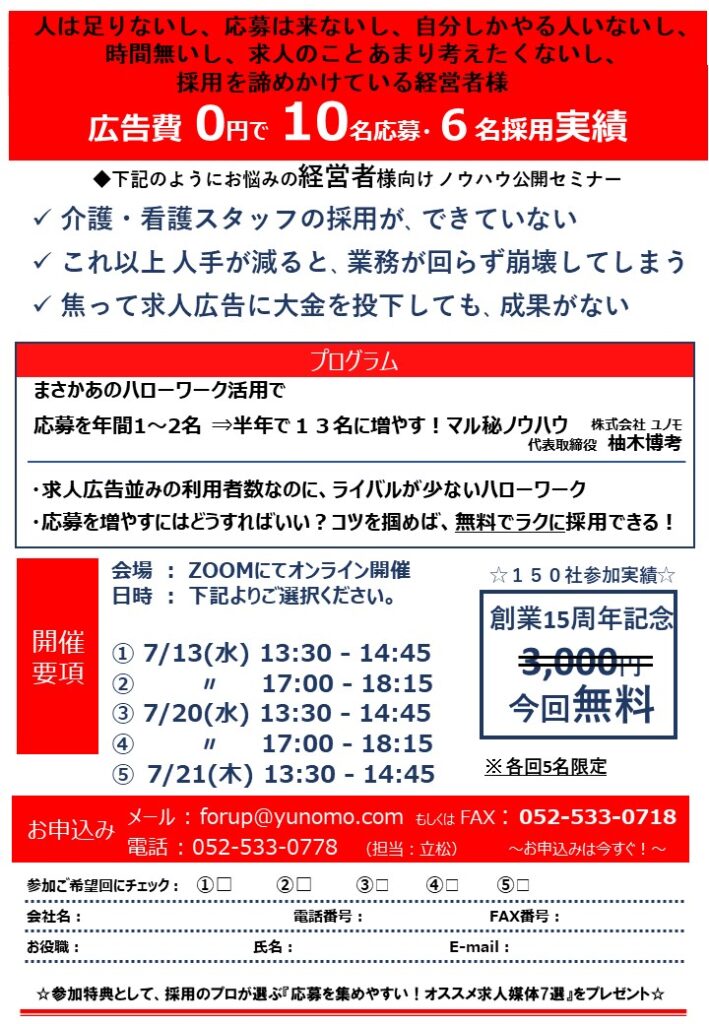 2022年7月「ハローワーク活用術」無料webセミナー開催のお知らせ