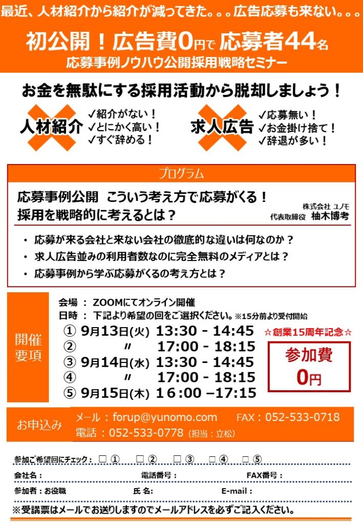 2022年9月「応募事例ノウハウ公開採用戦略」無料webセミナー開催のお知らせ