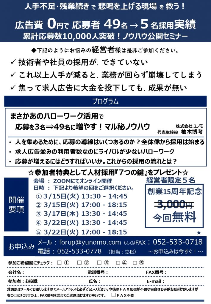 2022年3月「ハローワーク活用術」無料webセミナー開催のお知らせ