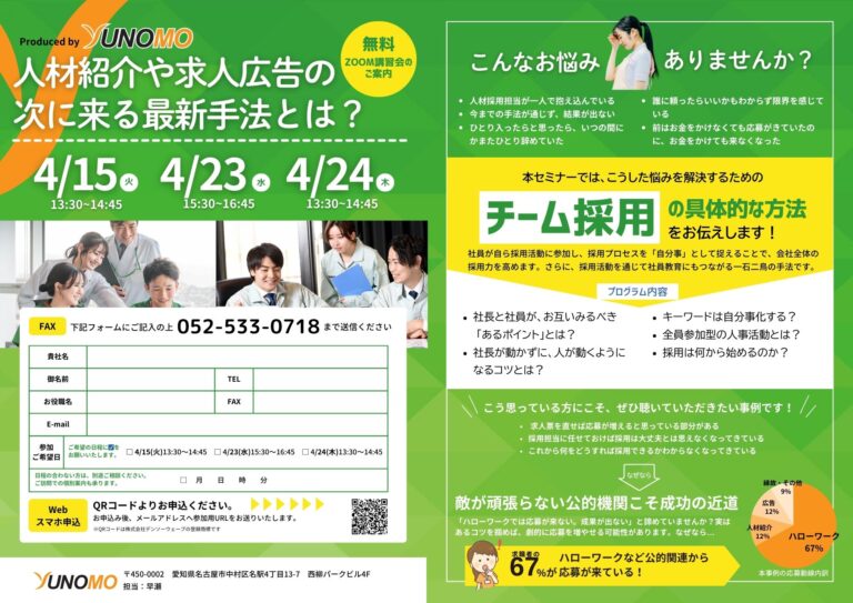「今回無料」で愛知県の最新求人の事例共有セミナーを開催します。