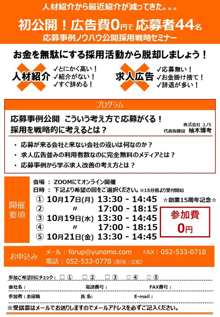 2022年10月「応募事例ノウハウ公開採用戦略」無料webセミナー開催のお知らせ
